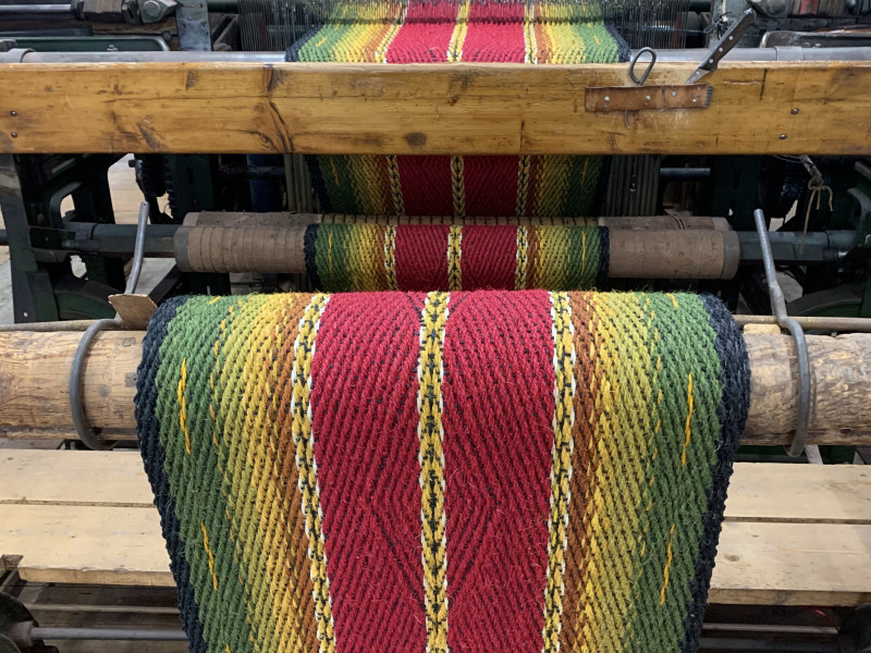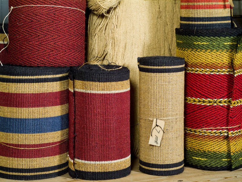 Een Genemuider klassieker. Op oude weefgetouwen en weefmachines worden de jutegarens in zorgvuldig gekozen kleuren, tot een stevig weefsel verweven.